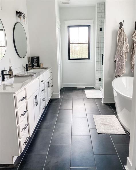 11 Photo Collection Of Dark Tile Bathroom Floor;
